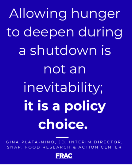Allowing hunger to deepen during a shutdown is not an inevitability; it is a policy choice..